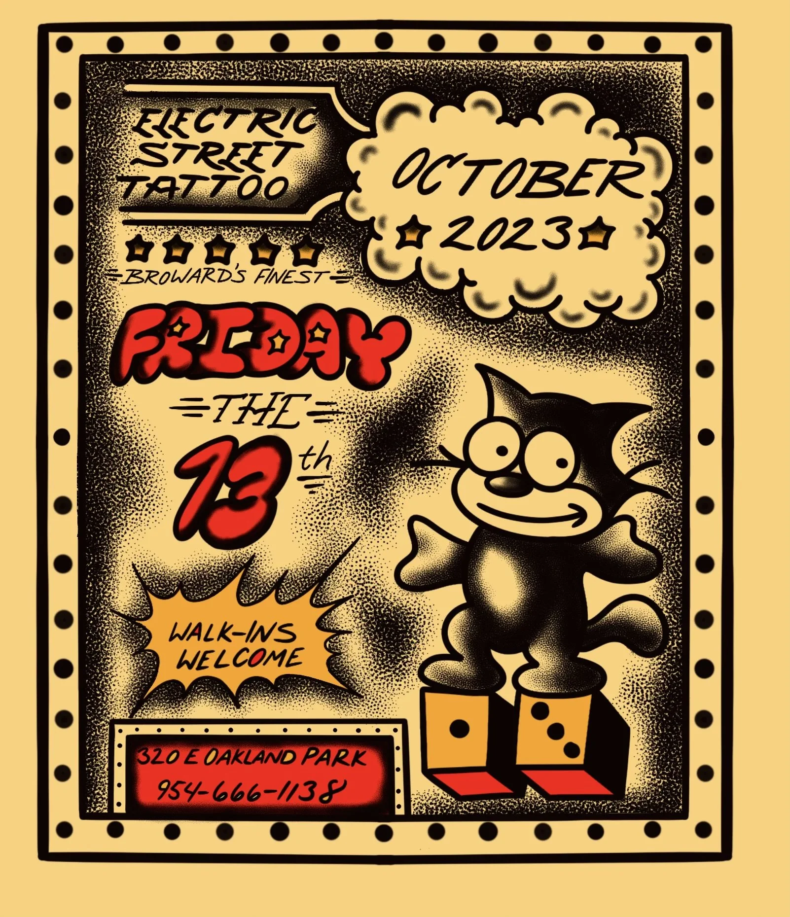 Prepare for a day of ink, fun, and unforgettable memories. Celebrate Friday the 13th with Electric Street Tattoo, where superstition meets artistry, and ink becomes legend. ππ¦π