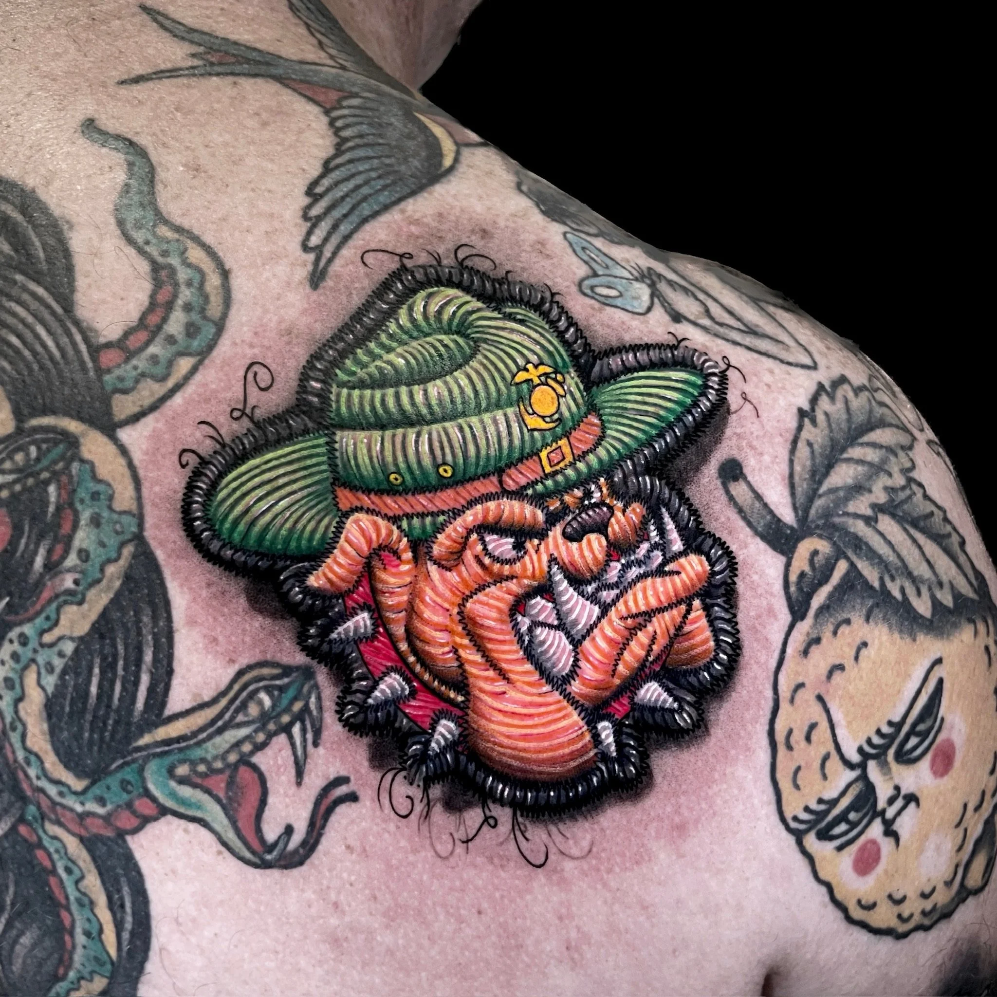 The key to a successful embroidery tattoo lies in the artist’s understanding of light and shadow, as well as their ability to layer colors to create the desired three-dimensional effect. CJ Ugarte excels in this, using small strokes in various colors to achieve the look of embroidered patches, while keeping the design itself elegantly simple3.