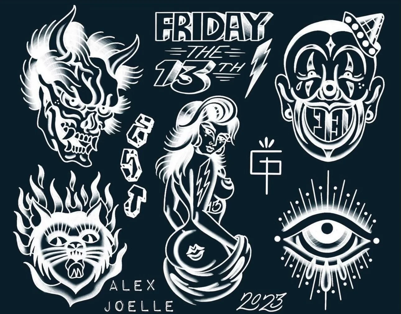 Friday the 13th has become a beloved tradition in the tattoo community, known for its fun, spooky, and often superstitious-themed designs. It’s a day when tattoo shops around the world offer special deals and flash designs to celebrate this iconic date.